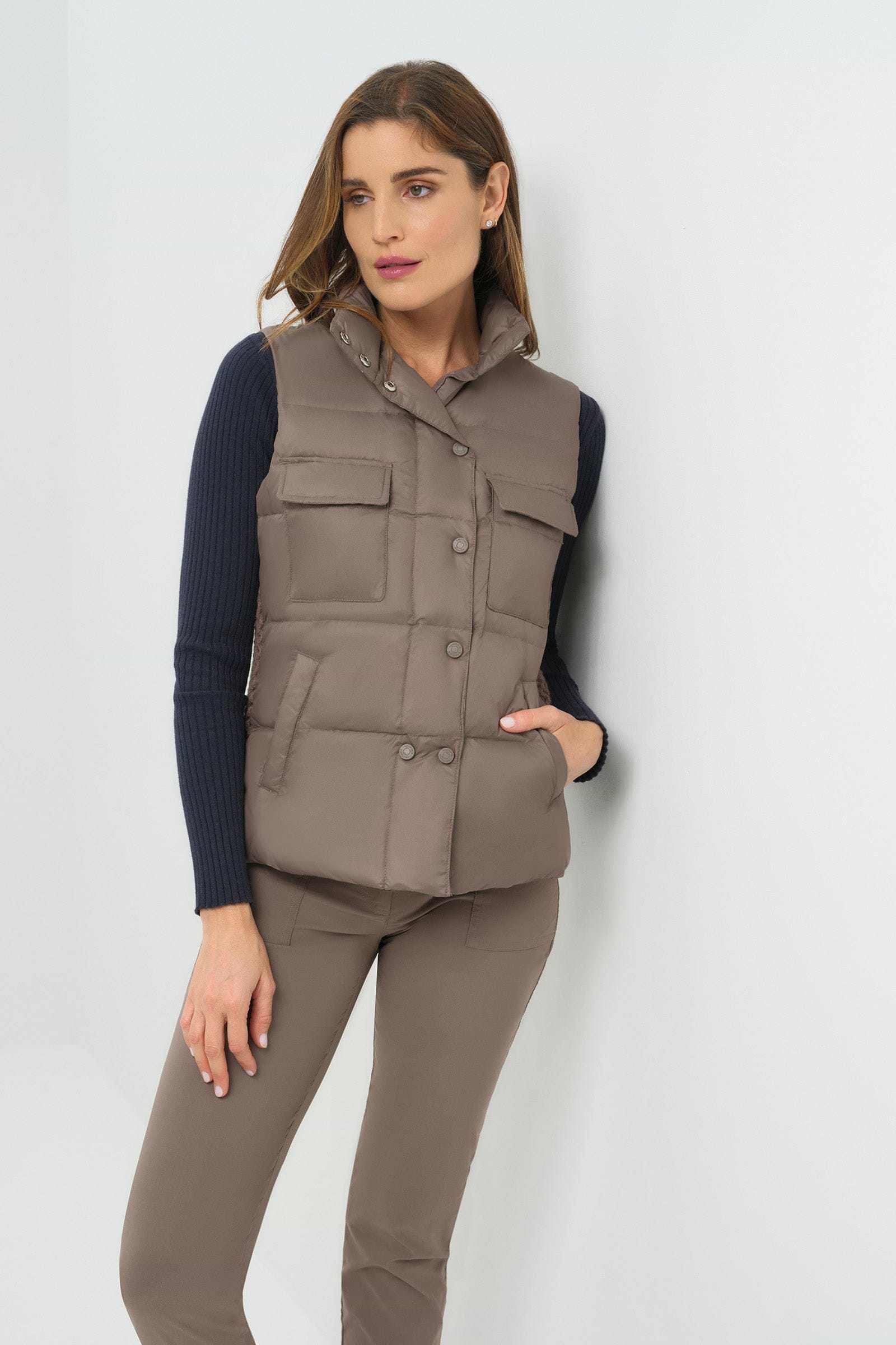 Nina Puffer Jacket with Knit Back and Sleeves - Taupe