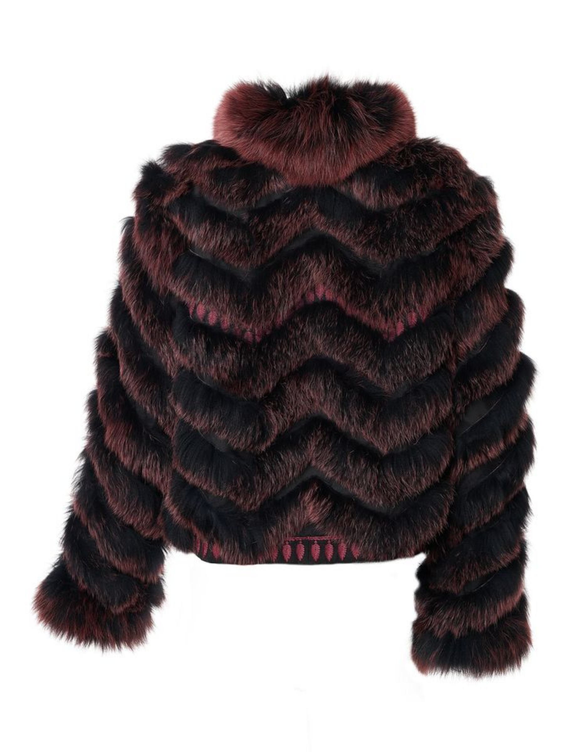 Embroidered Reversible Silk To Fox Jacket in Black Tibet