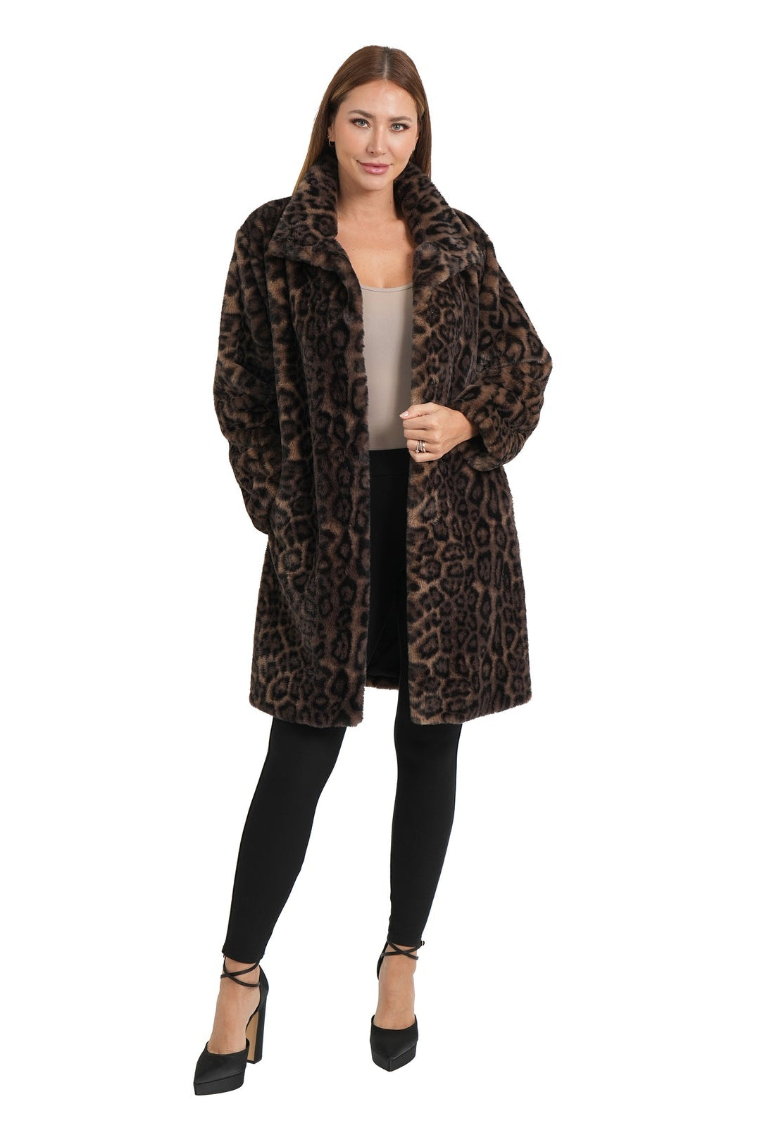 Zion Long Leopard Faur Fux Coat