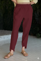 The Katie Pant is crafted from premium crepe knit for durability and comfort. Featuring an elastic waistband, it ensures a tailored fit while offering ease of wear. Designed with practical side pockets and contrasting side panels, this pant combines functionality with style. The high-low hemline adds a modern touch, and the relaxed fit provides effortless comfort for all-day wear. Ideal for those seeking a balance of sophistication and ease in their wardrobe.