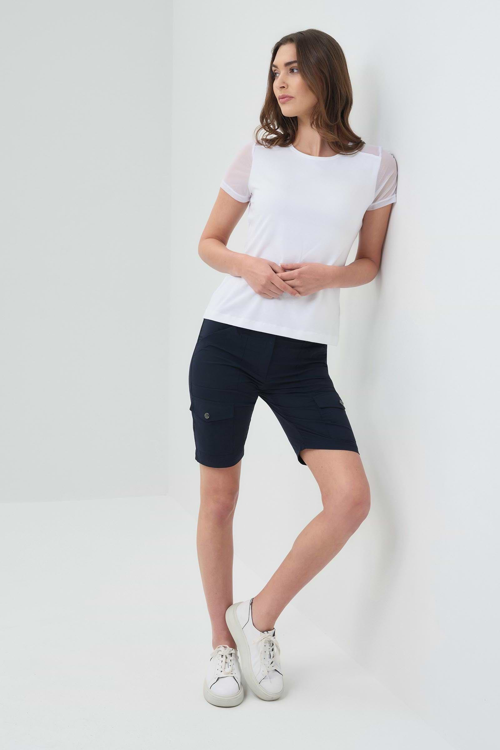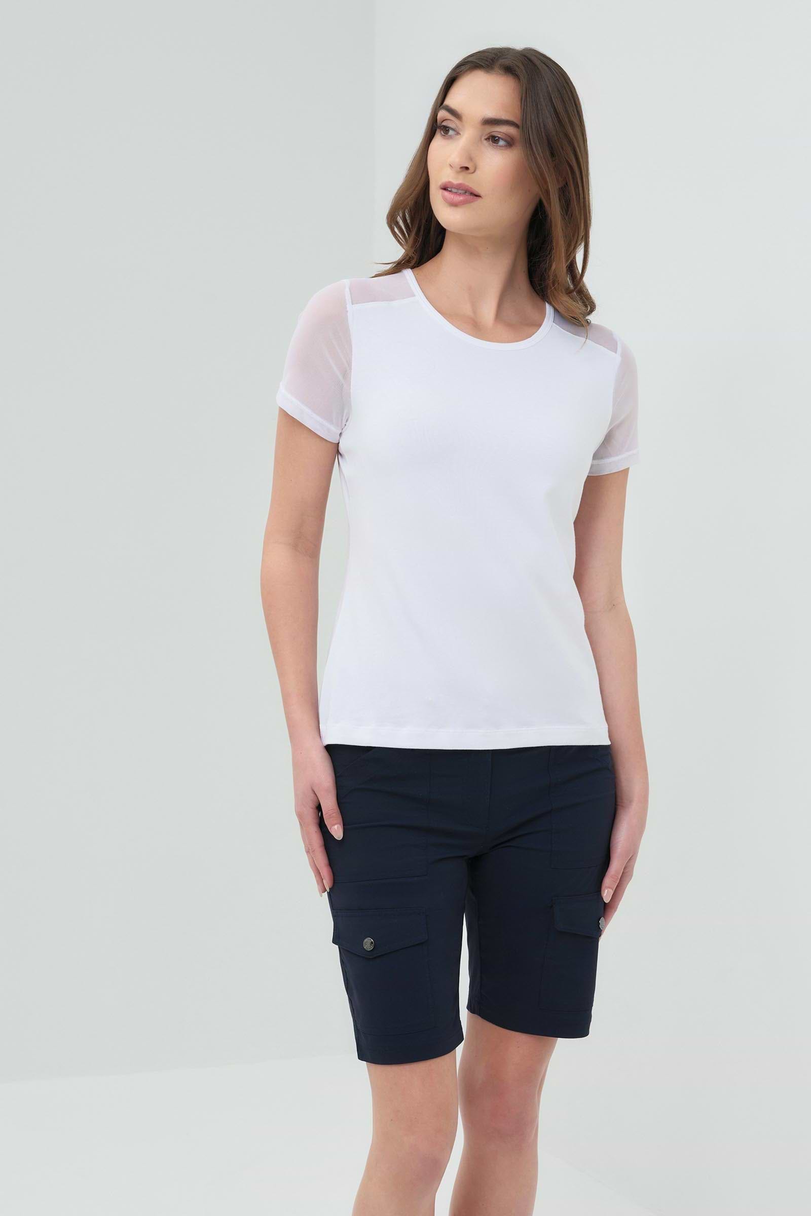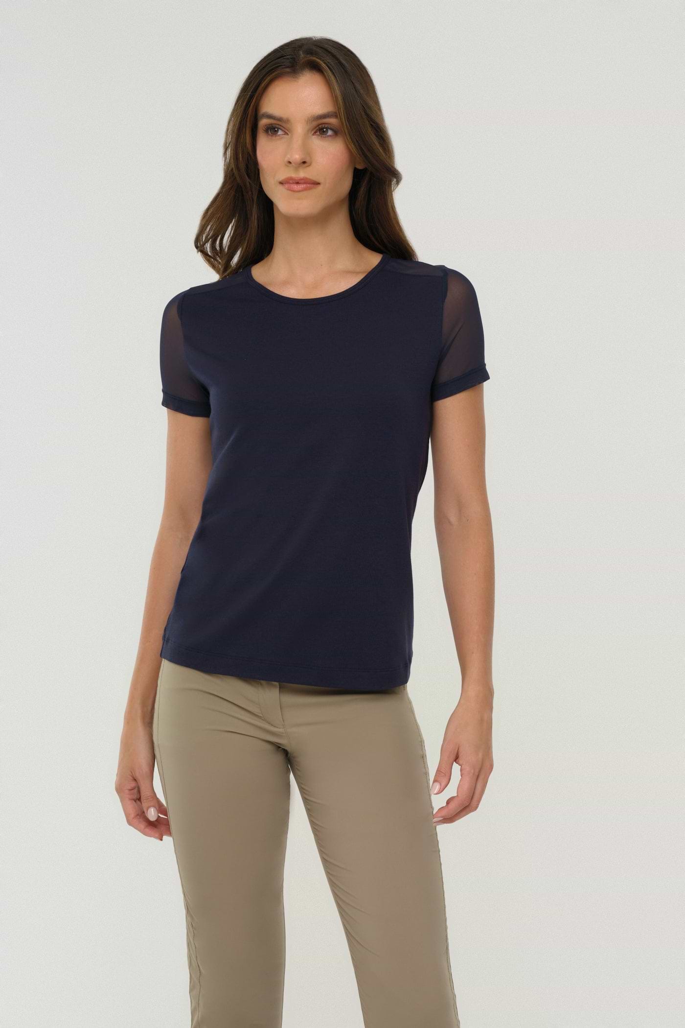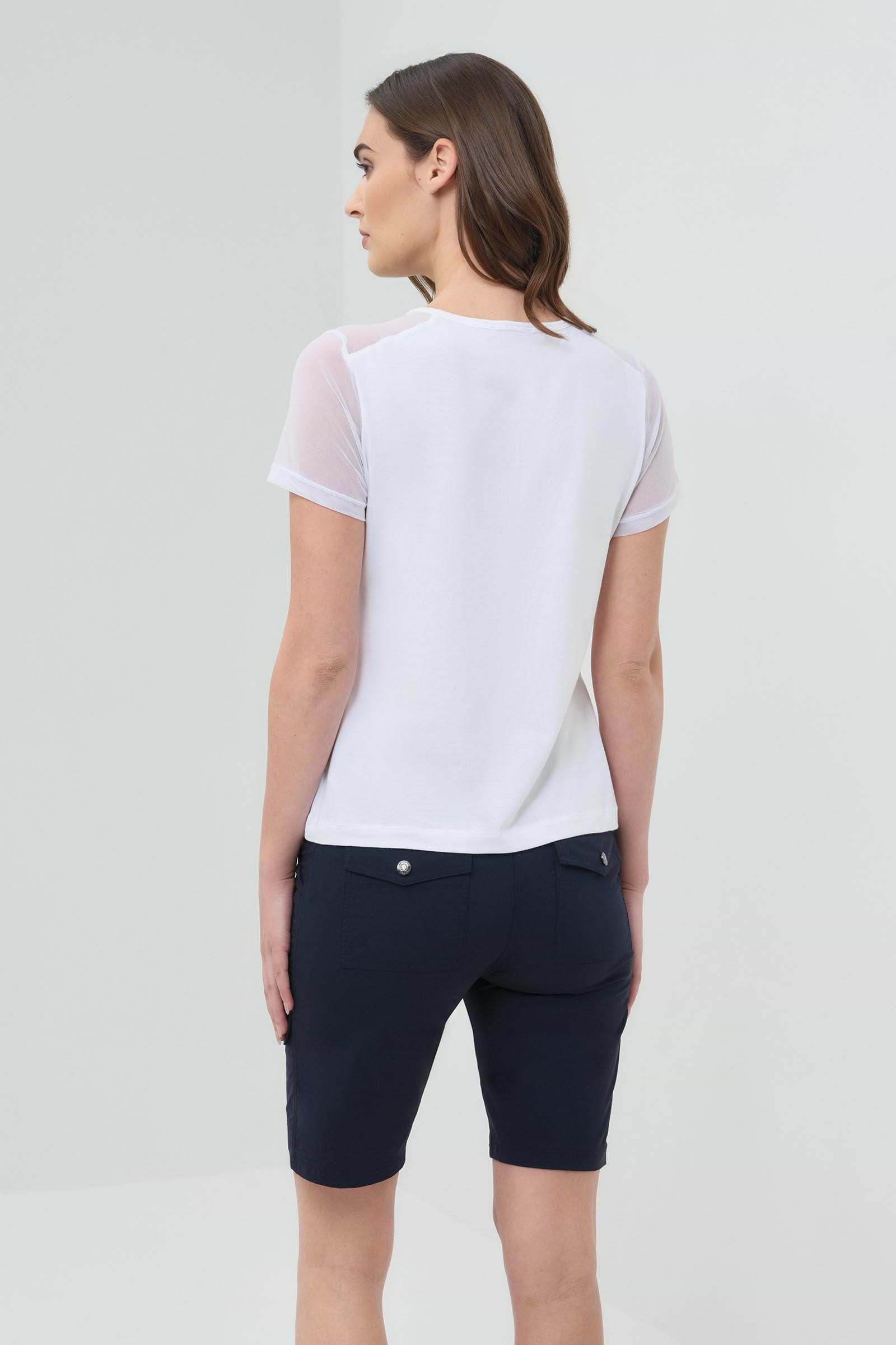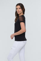 The Melissa Tee features airy mesh sleeves that keep you comfortable and stylish all day. Its wrinkle-free fabric and slim fit make it an easy choice for any occasion, ensuring you look polished without extra effort. Perfect for those who want a reliable, flattering tee that supports your busy lifestyle.