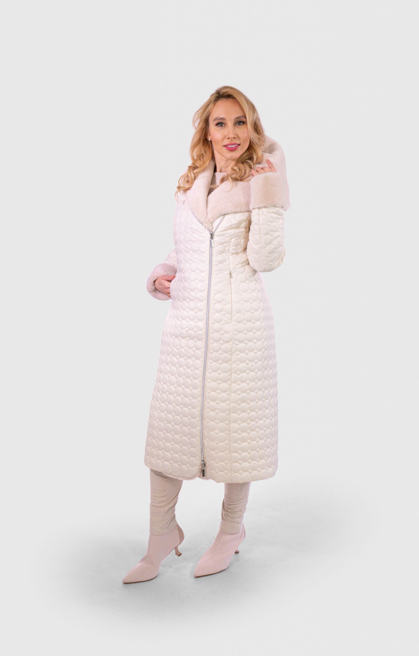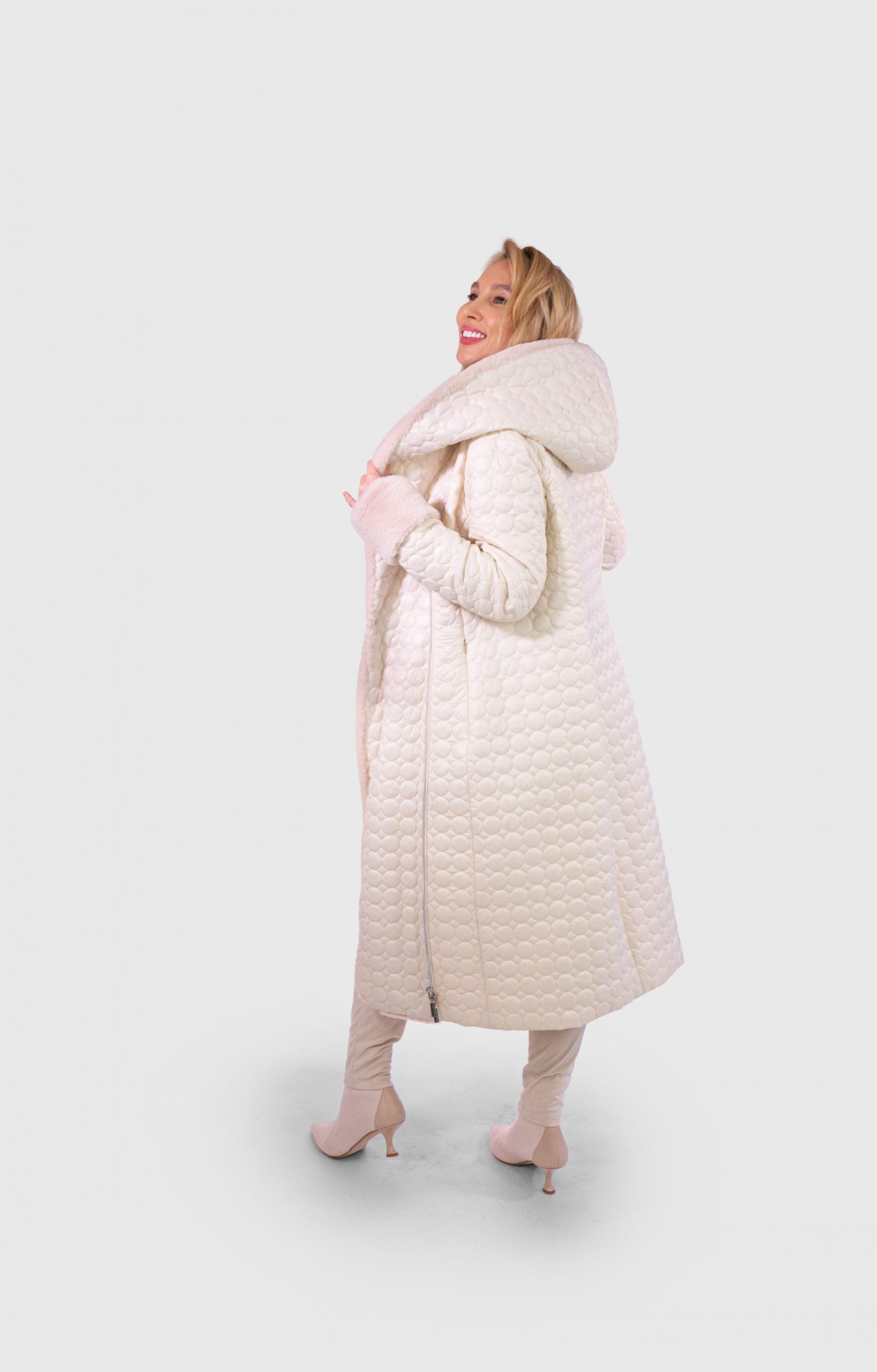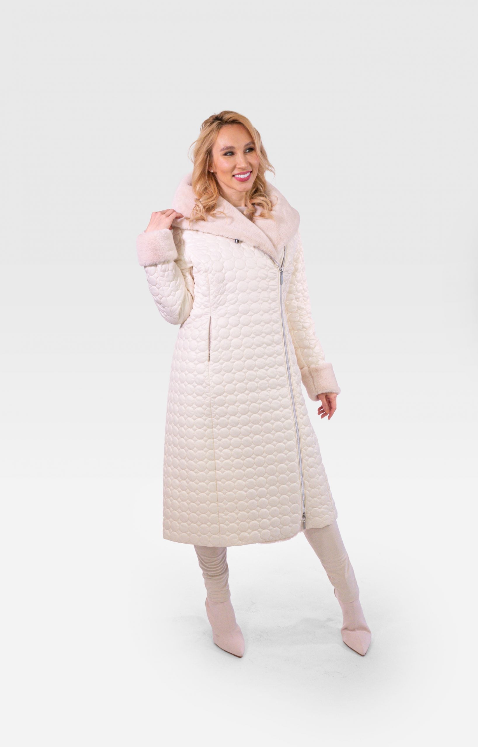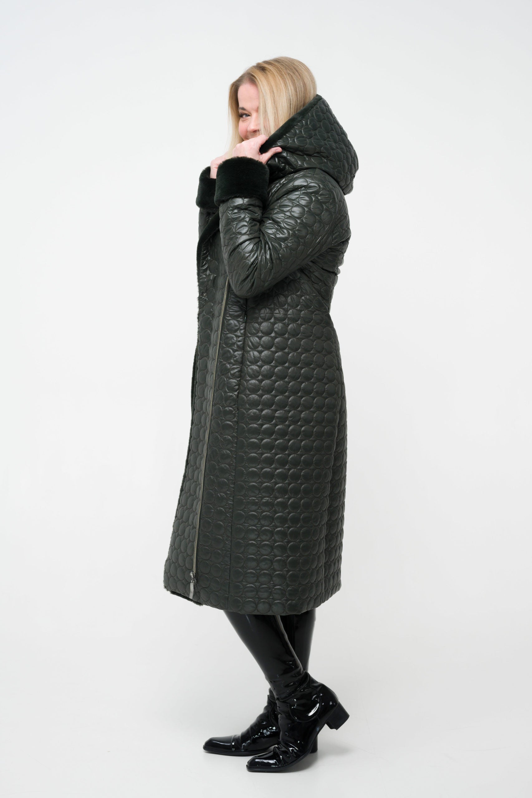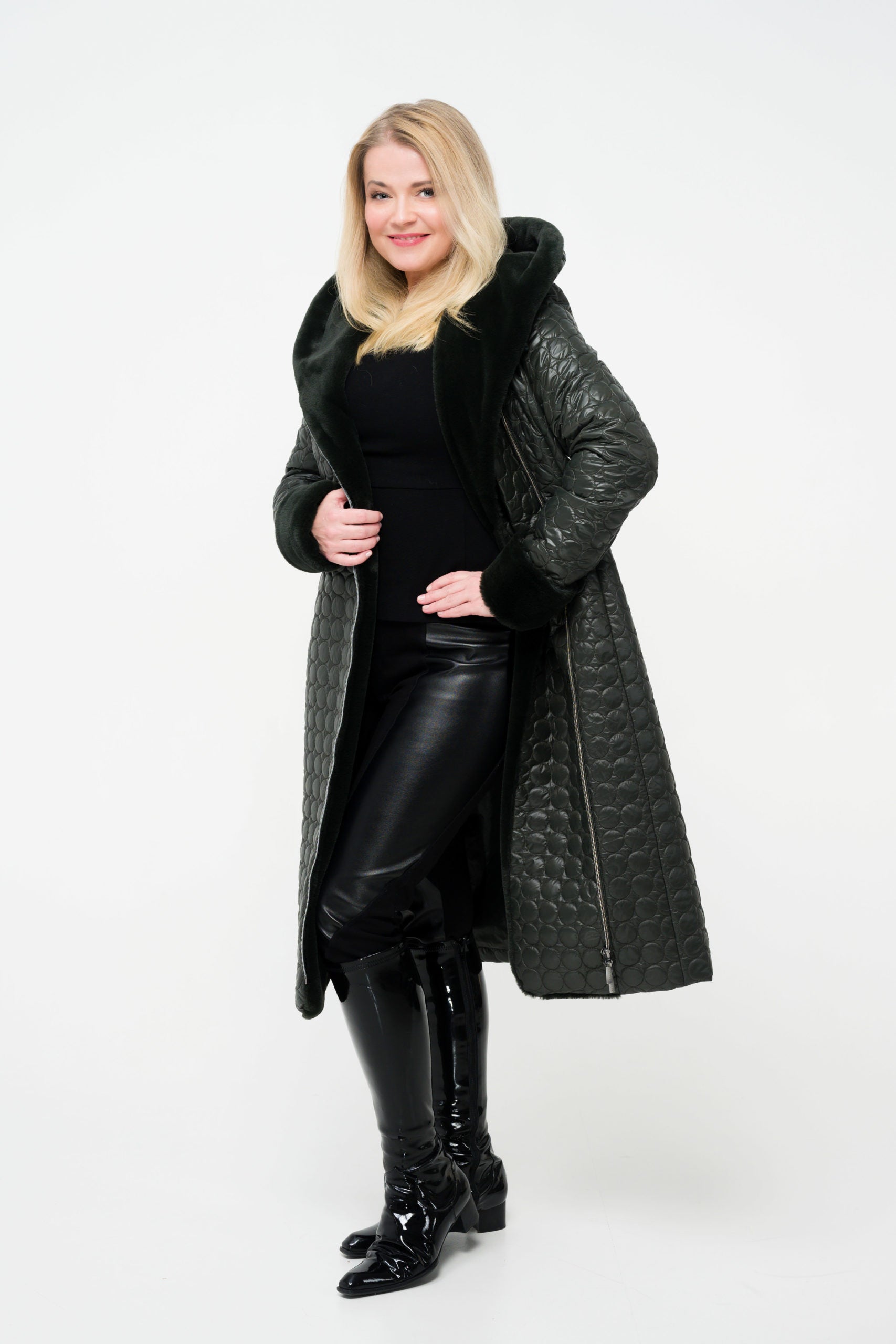 This Jade Quilted Coat with Fur combines sophisticated design with practical warmth. Crafted from quilted material, it features a soft, fluffy fur lining on the front and inside the adjustable hood for added comfort. The hidden zippered pockets also offer a touch of luxury with fur-lined interiors.