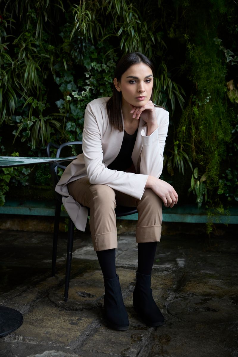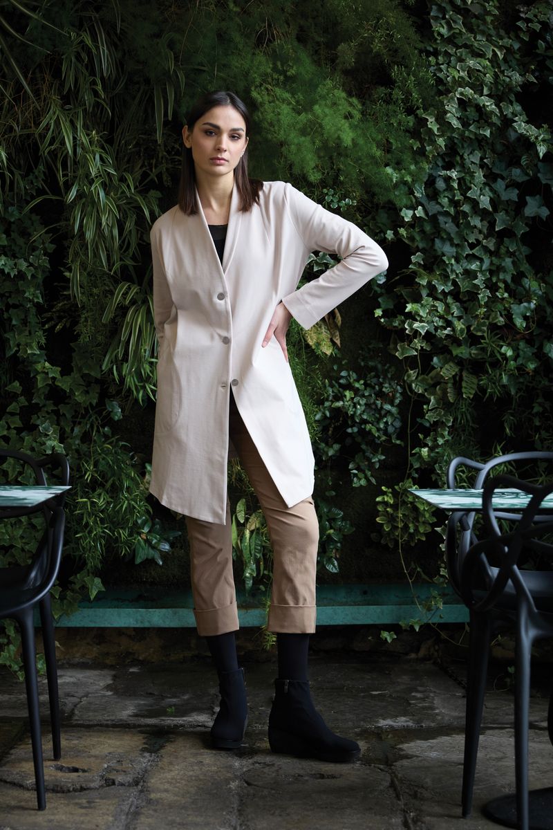 Porto's Steward Jacket is crafted from a durable ponte knit, offering both structure and comfort. Featuring a sophisticated Mandarin collar, tailored set-in shoulders, and a button-front placket, this jacket delivers a clean, trim A-line silhouette. Functional slit pockets at the hips add convenience without compromising style. Designed to fit true to size, it provides a sleek, tailored look with a comfortable feel, though it offers a more fitted cut through the hips compared to other Porto pieces. Ideal for those seeking a polished yet approachable outer layer.