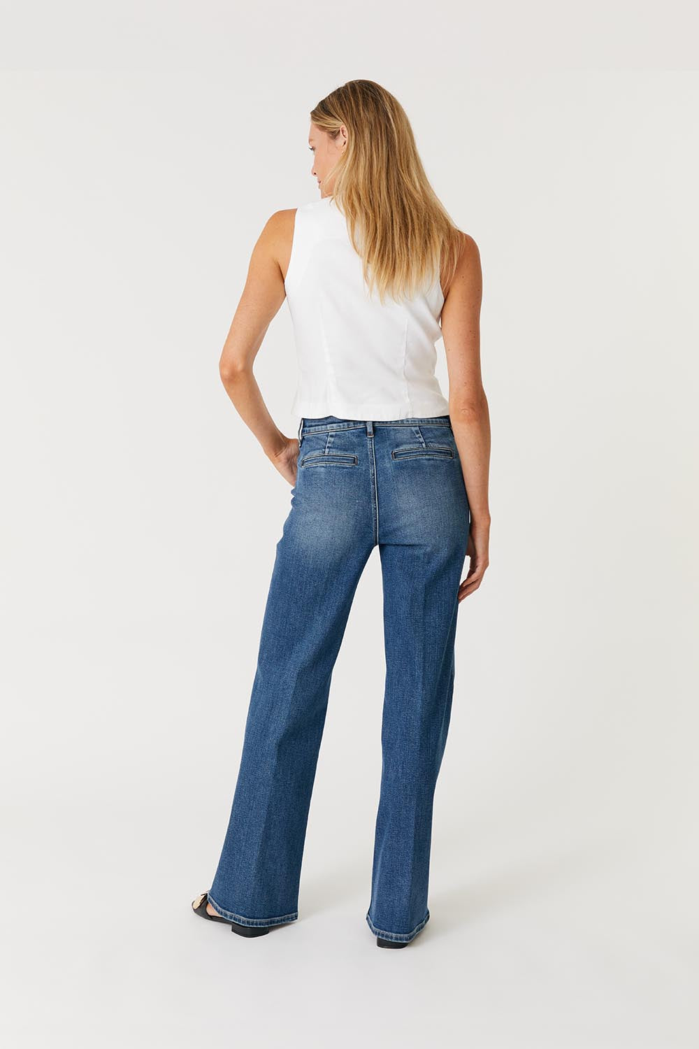 The Ellis Denim Trouser blends 90's nostalgia with contemporary tailoring, featuring a relaxed fit with sophisticated trouser details including slant pockets and a classic center crease. Crafted from premium stretch cotton denim, these pants offer exceptional movement while maintaining structure. The versatile design transitions effortlessly between casual and polished settings, delivering both comfort and refined style.