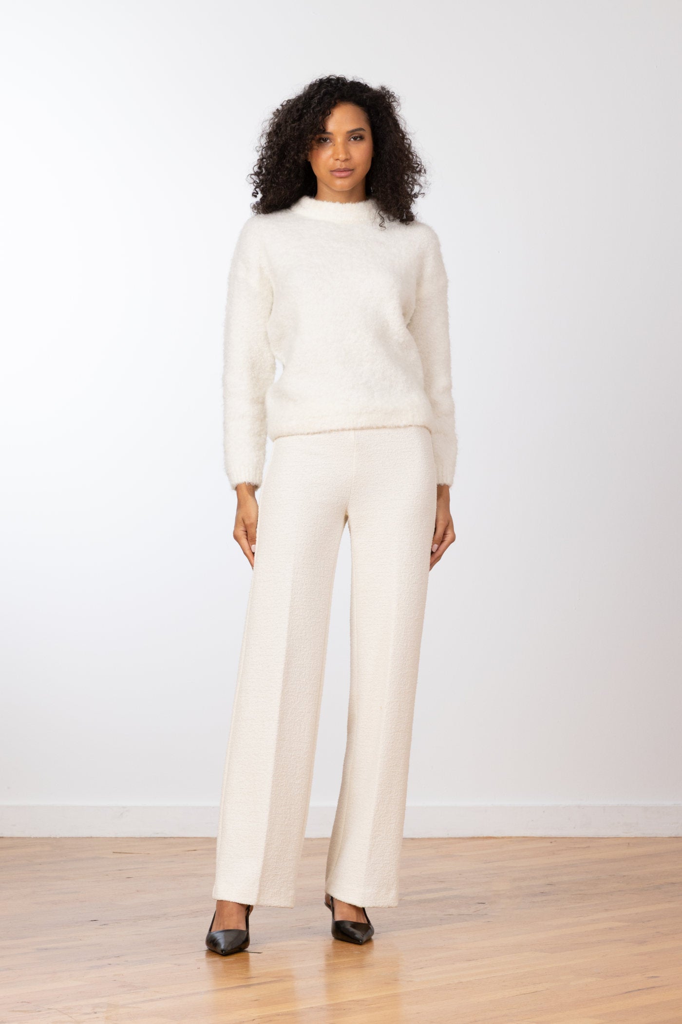 Swirl into comfort and style with the FLAVIA Boucle Wide Leg Pant. With its full length palazzo-style and loose cut, these pants gracefully flare to give you a flattering silhouette. Take a stroll in these supremely comfortable and stylish pants.