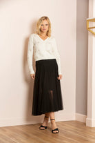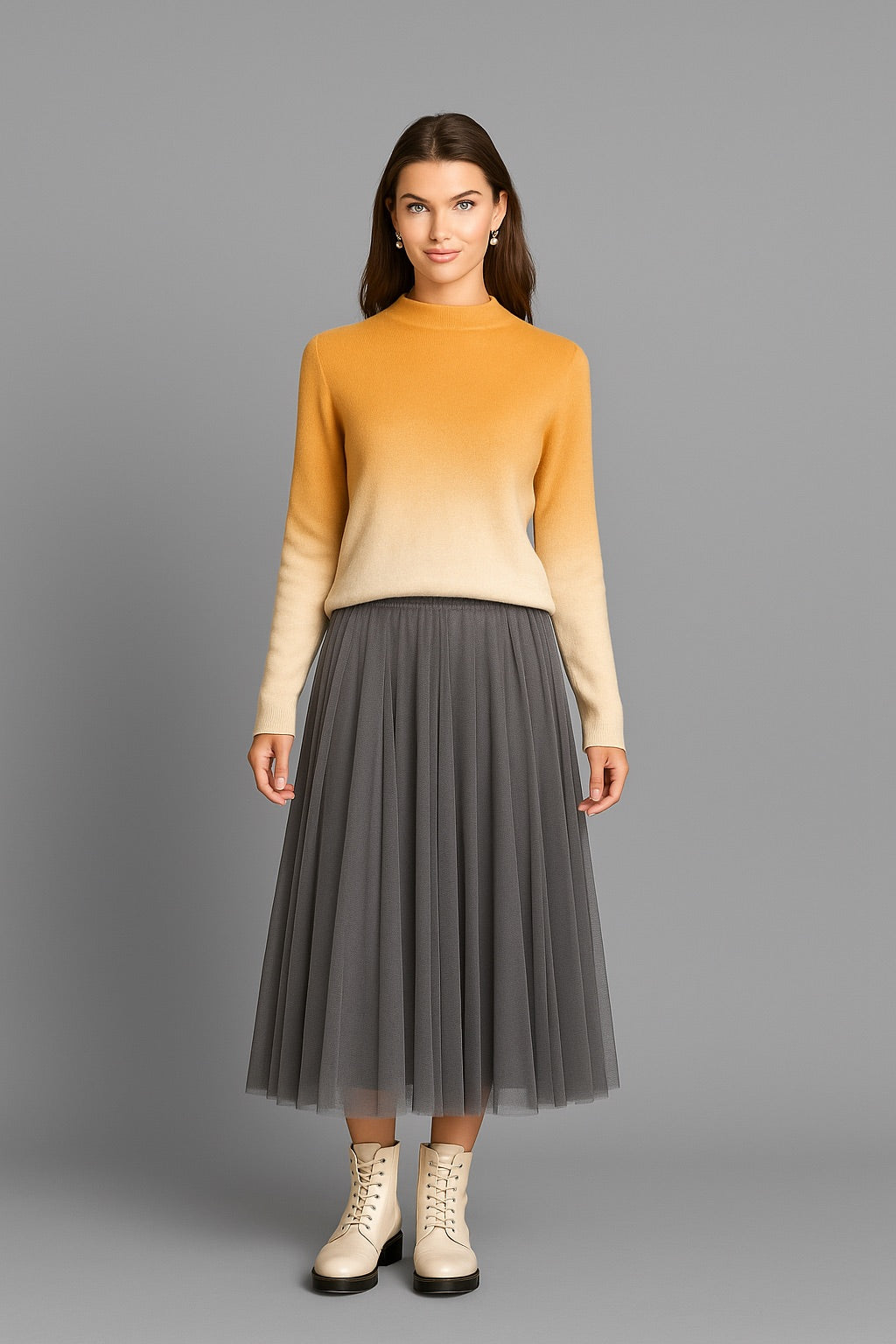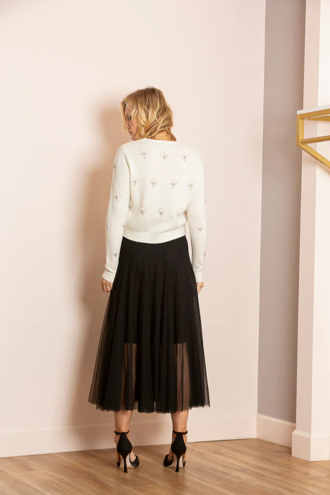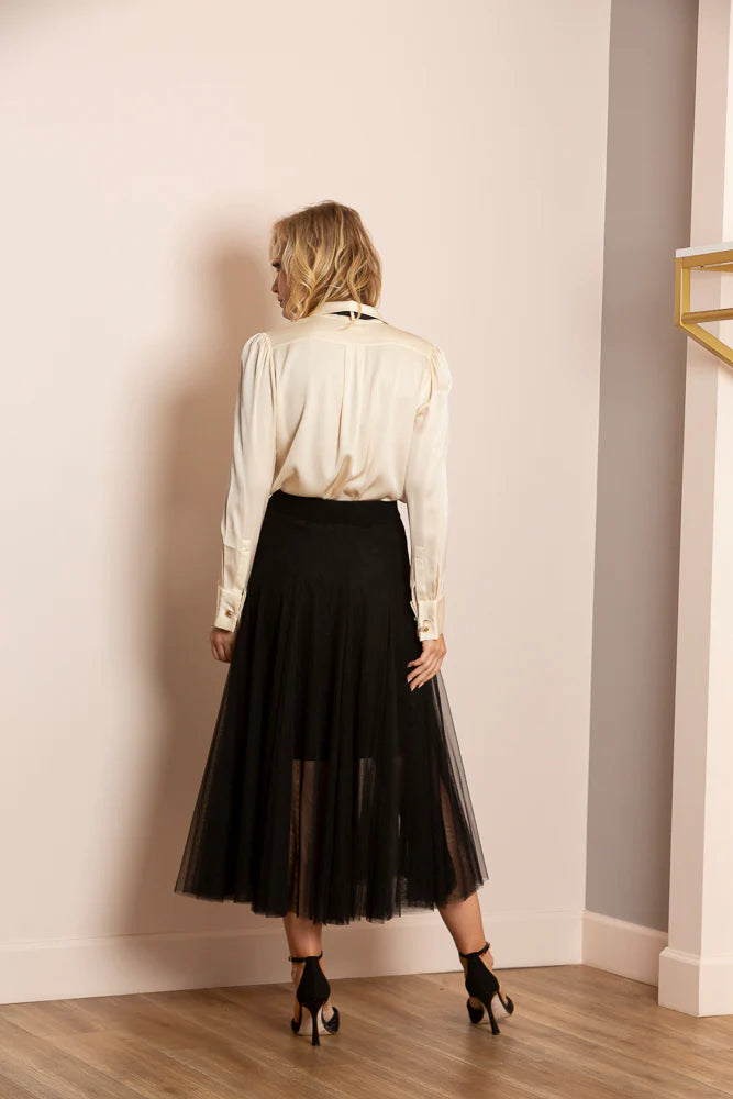 Elegant Lilliana tulle skirt with soft merino wool lining for comfort and warmth. Perfect for chic, layered looks year-round.