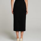 The Lola Pencil Skirt by Vilin offers a refined silhouette in classic black, ideal for elevating professional or elegant wardrobes. Featuring a discreet zip closure, it ensures a smooth, tailored fit that complements any outfit. Crafted with a solid pattern and easy-care fabric, this skirt balances timeless style with practical wearability, making it a versatile and enduring addition to your collection.