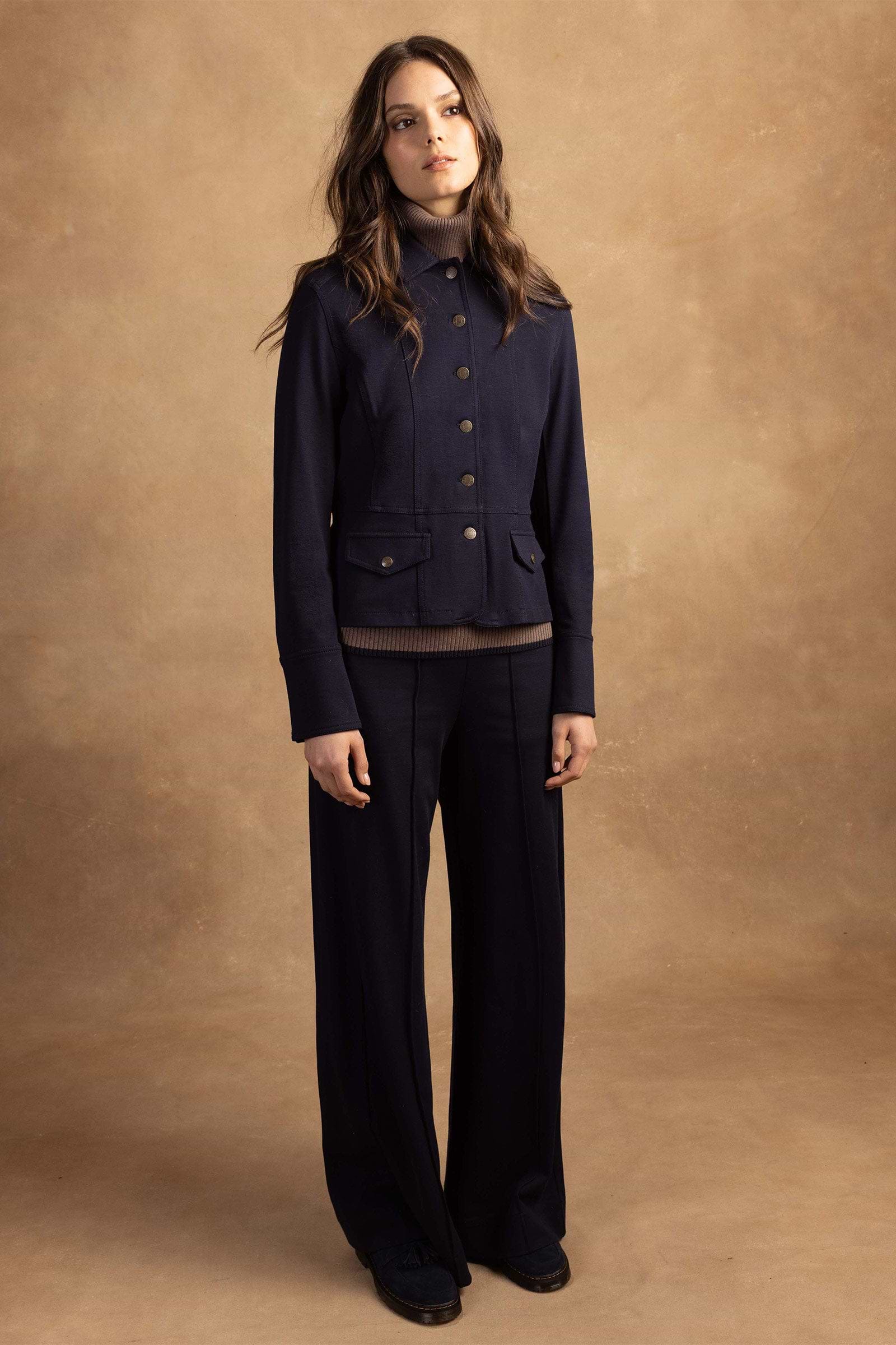 The Meadow Pintuck Pant in Navy, part of Anatomie's limited Edition Weekend Getaway capsule, combines refined style with superior comfort. Crafted from heavy pique fabric, these pants provide durability and a structured feel suitable for both office wear and relaxed evenings at home. The wide leg silhouette and precise pintuck detailing enhance a modern, sophisticated look, while the hidden zipper adds a seamless, elegant finish.