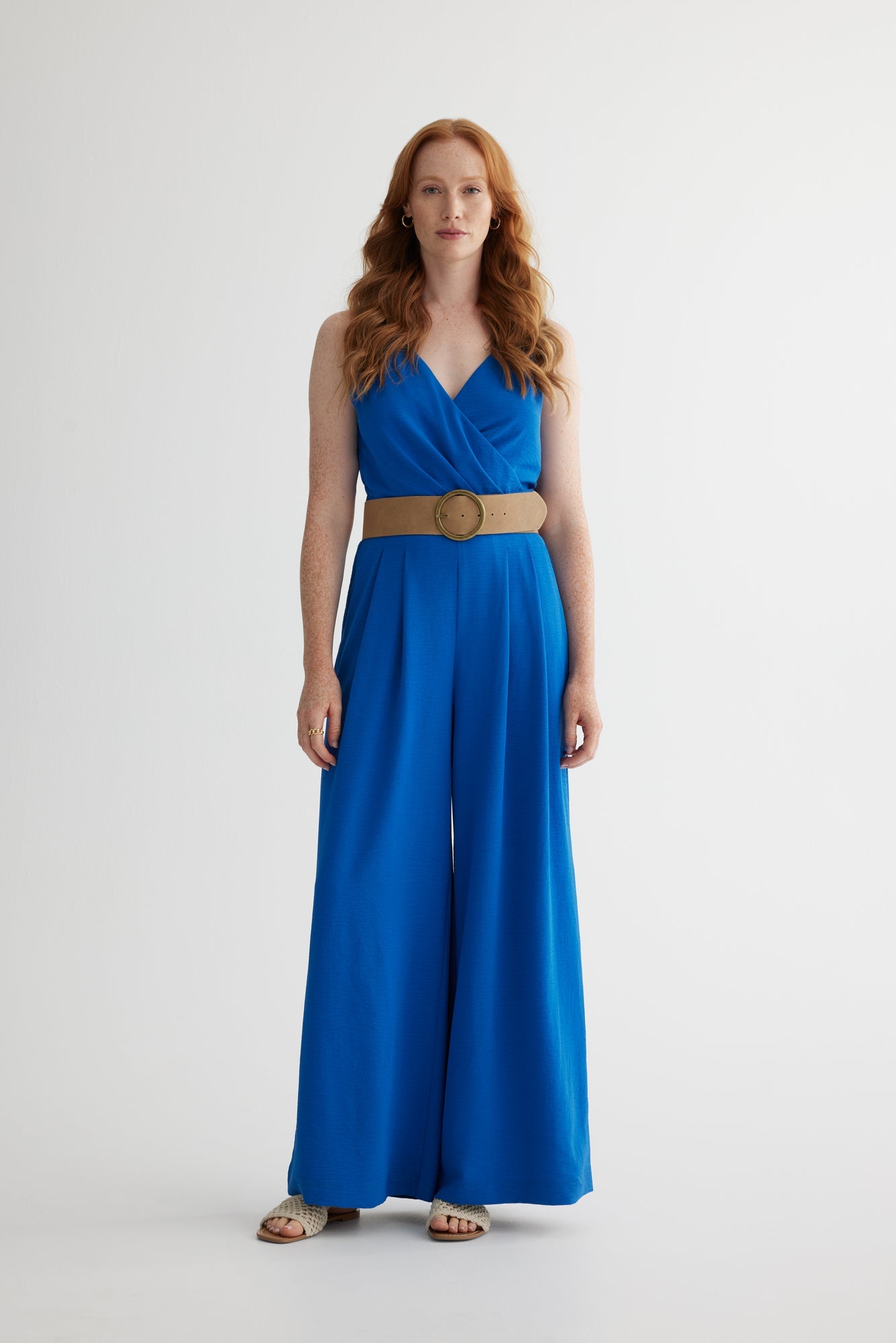 Sleeveless Crisscross Jumpsuit Wide Leg - Cobalt