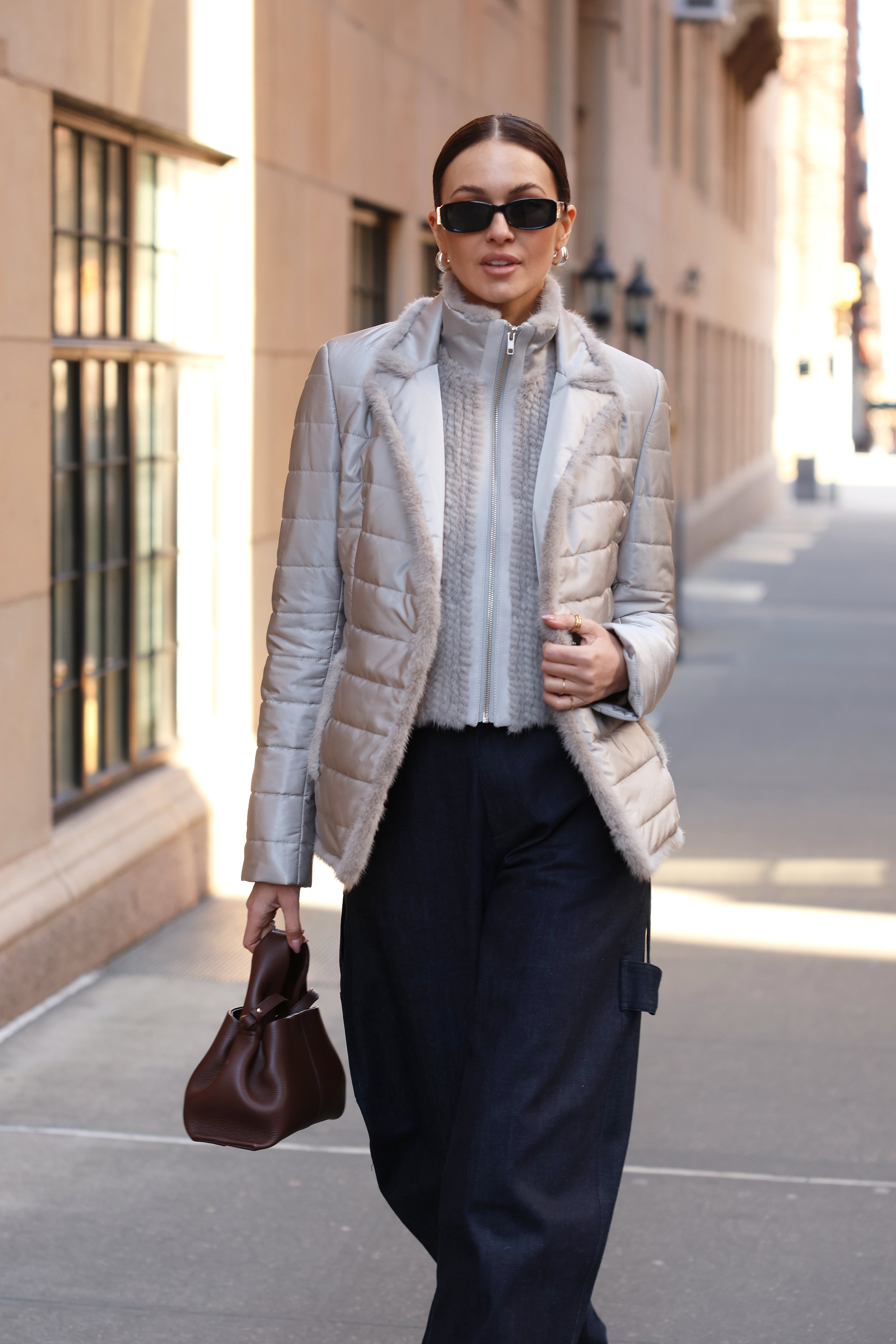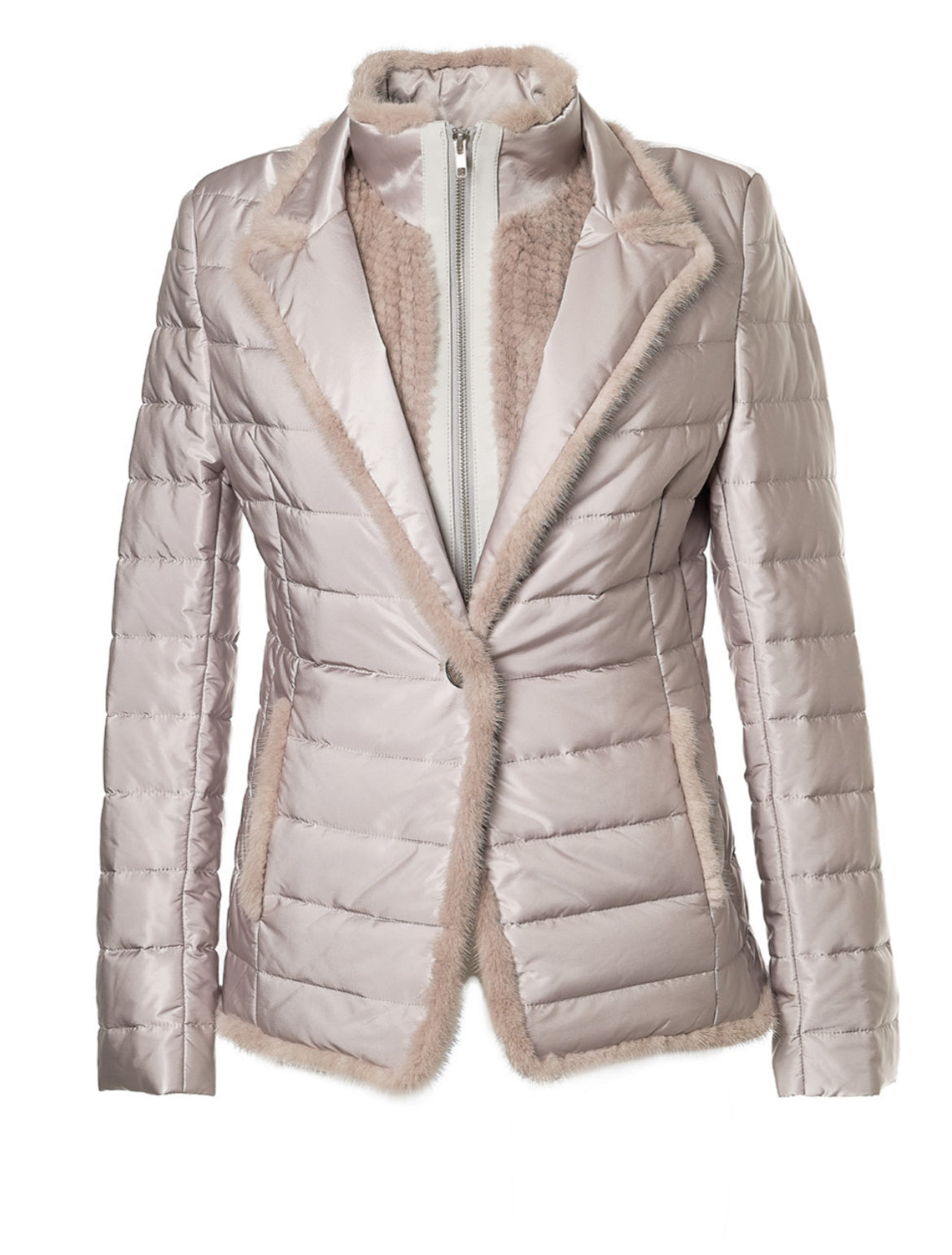 Quilted Jacket with Mink in Platinum