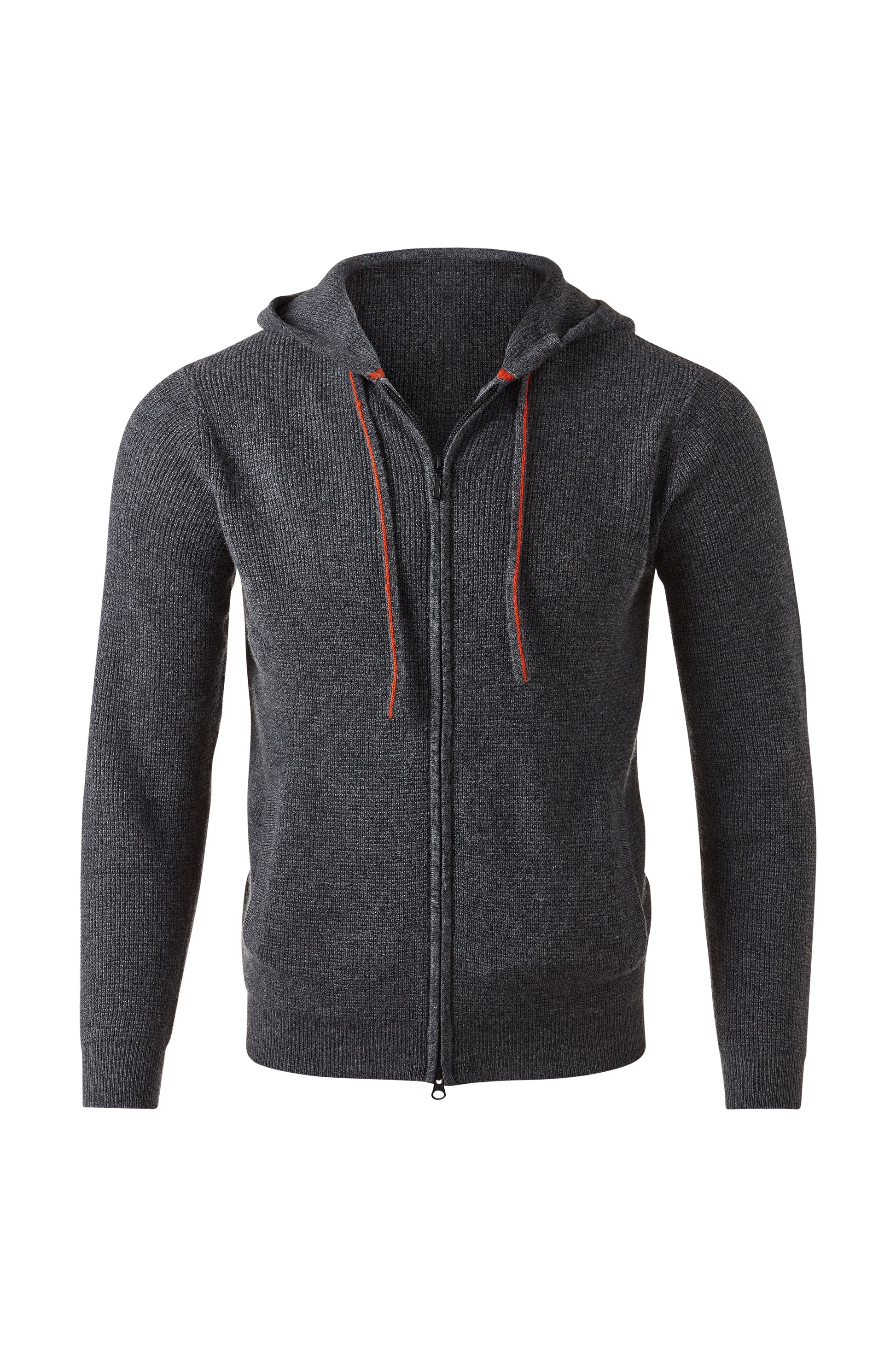 Experience unmatched luxury with the Thermal Zip Hoodie, expertly crafted from 100% pure cashmere. This men's sweater combines exceptional softness with lasting durability, providing a sophisticated fit that maintains its shape while offering a subtly relaxed silhouette over time. Perfect for elevating casual looks or layering for more formal occasions, it delivers superior comfort and timeless style. Designed for those who appreciate refined craftsmanship, this hoodie is a versatile essential that enhances any wardrobe with its blend of elegance and cozy warmth.
