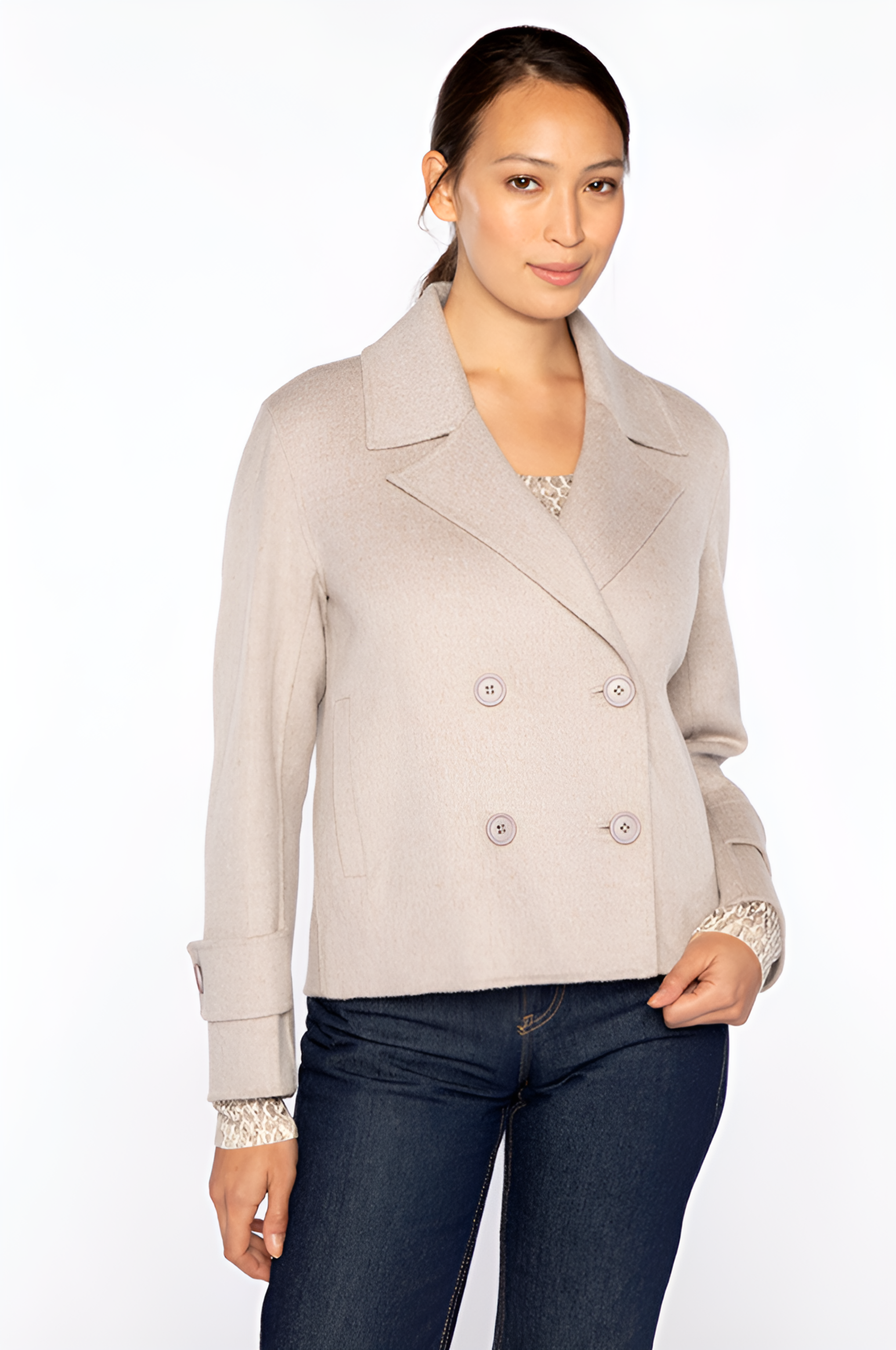 Elevate your wardrobe with this taupe short trench coat, crafted from a luxurious 70% wool and 30% cashmere blend for exceptional softness and warmth. Designed with a true-to-size fit and a relaxed option, it gracefully drapes to enhance your silhouette while offering versatile styling. Ideal for layering over both tailored and casual outfits, this coat combines timeless elegance with premium comfort, making it a sophisticated choice for transitional seasons and refined outerwear collections.