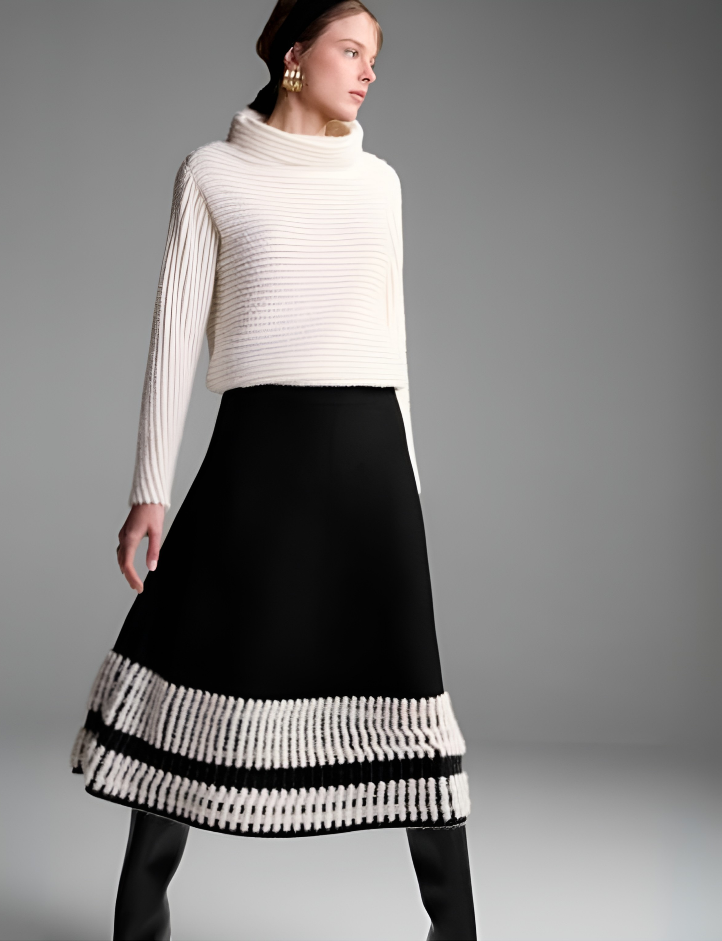 The Single Skirt merges refined elegance with contemporary design through its distinctive openwork plaid pattern. Expertly crafted from premium fabrics, it offers a flawless fit that flatters the feminine silhouette while providing exceptional comfort. Perfectly suited for both professional settings and social gatherings, this midi skirt adds a sophisticated and versatile element to any wardrobe. Elevate your style with this expertly designed piece that balances timeless charm and modern appeal.