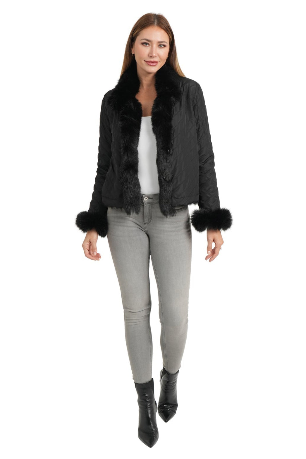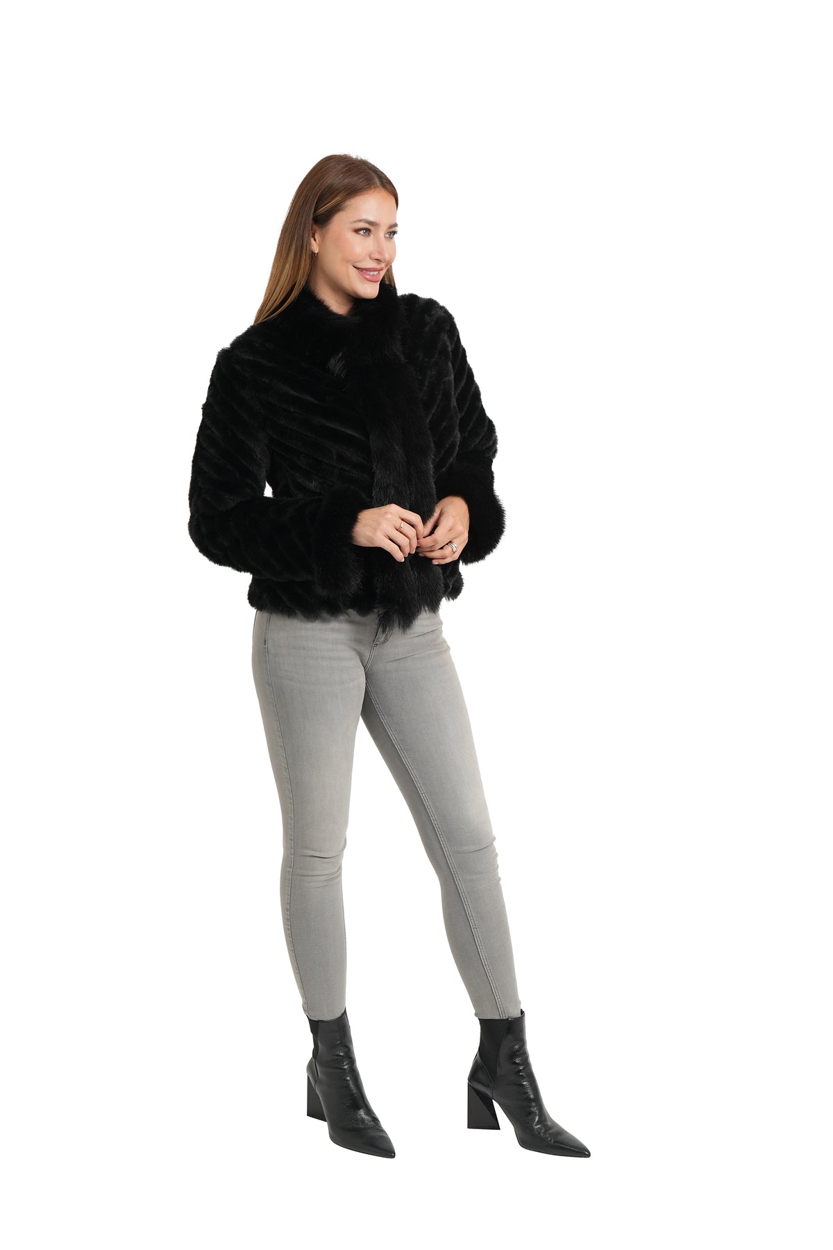 The Meghan Reversible Jacket offers versatile style with its reversible design and relaxed fit for comfortable layering. Crafted with plush faux fur, it features secure magnetic button closures and convenient slit pockets, seamlessly combining practicality with luxurious texture for a polished yet effortless look.