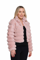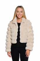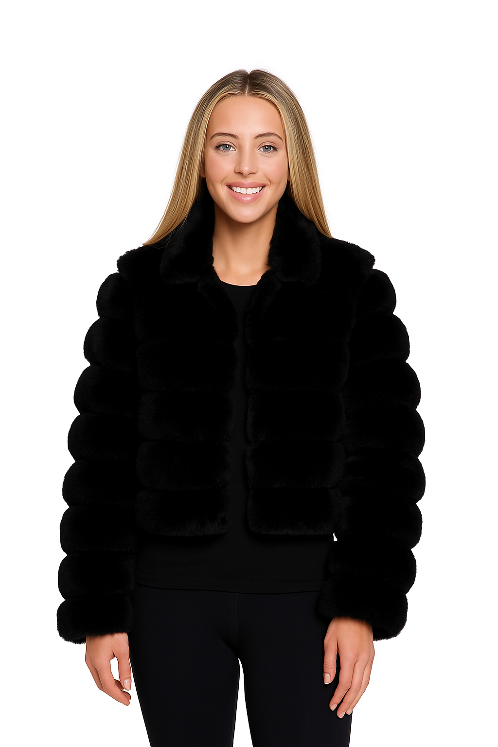 Designed for the woman who values style, confidence, and craftsmanship, this cropped fur jacket features plush horizontal paneling, a high collar, and a satin-smooth inner lining for a flawless fit. Pair it with tailored trousers, sleek denim, or your favorite dress to command attention wherever you go.
