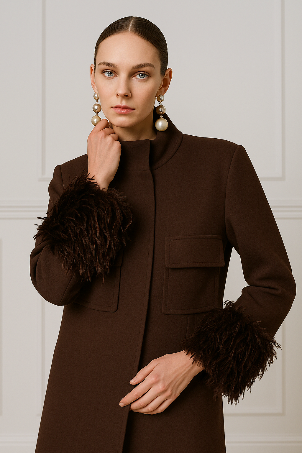 This Jacket with Feather Sleeves combines refined tailoring with luxurious detailing, featuring feather accents that add texture and movement. Designed for those seeking a sophisticated yet bold look, it delivers both elegance and comfort. Ideal for elevating formal wardrobes or making a statement at upscale occasions.