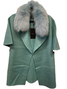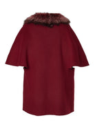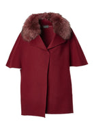 This short coat is crafted from luxurious unlined double-sided cashmere wool, offering a refined textural experience. Its cape-inspired silhouette is wide and enveloping, complemented by elbow-length roll-back kimono sleeves and a sharp lapel collar. Functional side inset pockets provide discreet storage, while the detachable fox fur collar adds an element of versatility, allowing for customizable elegance across seasons and occasions.