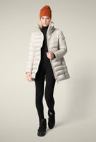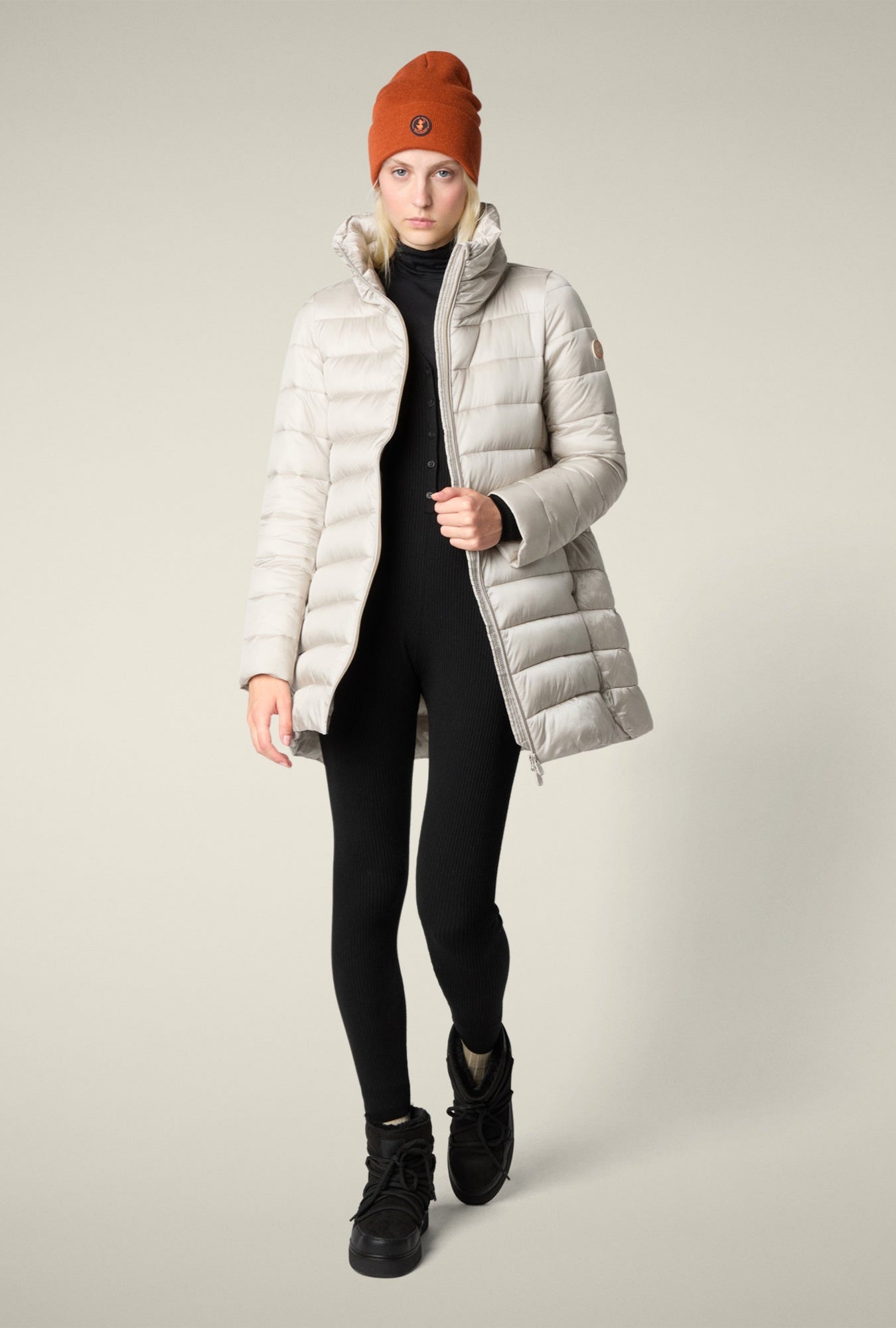 The Lydia Puffer Coat combines functional warmth and contemporary style, making it an essential piece for cold-weather wear. Its hip-length A-line silhouette enhances mobility while offering coverage, and the shiny nylon exterior provides a sleek finish. Filled with innovative animal-free Plumtech® insulation, the jacket achieves lightweight warmth without compromising ethical standards. Thoughtful features include a voluminous collar for added protection and a front zip closure for convenience. Subtle tonal accents, such as custom zip pullers and a round sleeve logo, reflect the distinct craftsmanship of Save The Duck.
