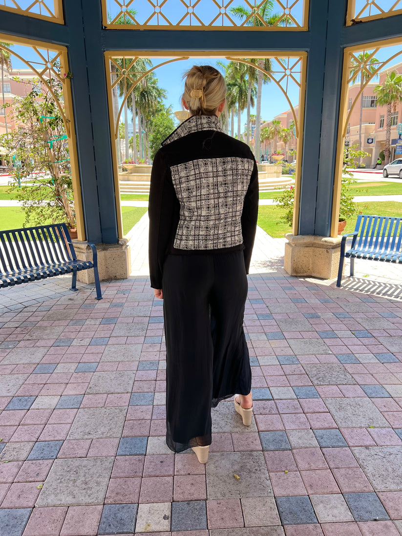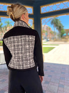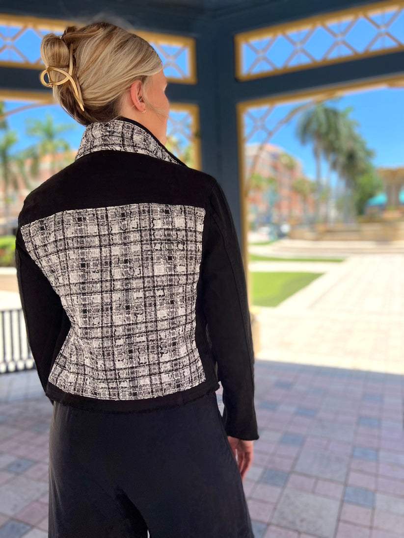 The Black Denim Jacket in Grey & Silver Tweed offers unparalleled comfort with its lightweight design and exceptional stretch. Engineered for a true-to-size fit, this jacket combines flexibility and style effortlessly. It is machine washable and should be hung to dry, ensuring easy maintenance without sacrificing durability. Perfect for those who value both comfort and a sophisticated look in their outerwear.