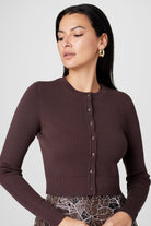The Zoe Classic Cropped Cardigan in Espresso offers a refined slim fit with a timeless button-down design. Crafted from soft yarn, it ensures comfortable wear throughout the day. Its fitted sleeves and cropped length provide a modern silhouette, making it a versatile layering piece for both casual and polished looks.