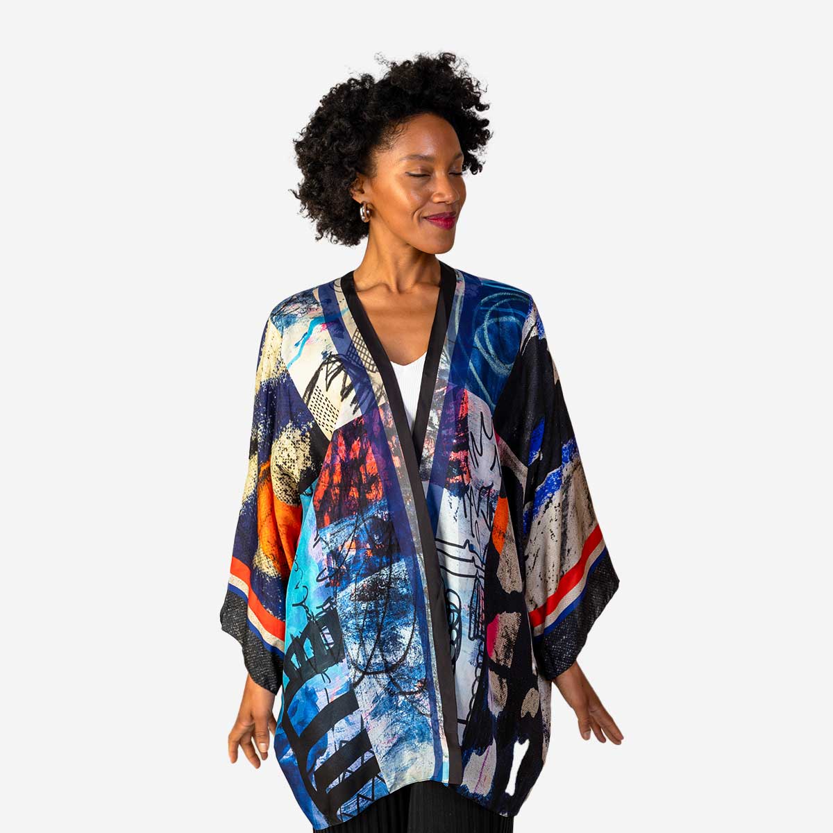 The Fiji Short Kimono by Isabelle Gougenheim combines luxurious silk construction with versatile styling options. This elegant one-size-fits-all piece transitions effortlessly from intimate loungewear to sophisticated outerwear. The kimono's premium fabric delivers a soft, sumptuous feel against the skin while its thoughtful design allows for styling as a robe, jacket, or statement shirt—instantly elevating any ensemble with minimal effort.