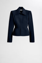 This Crepe Knit Peplum Collar Jacket showcases expert craftsmanship with its signature fabric and refined silhouette. Designed as a sophisticated wardrobe staple, it features a flattering peplum hemline that enhances shape and a sleek front zip closure for a polished look. Its elevated design merges comfort with style, making it a versatile piece for both professional and elegant occasions.