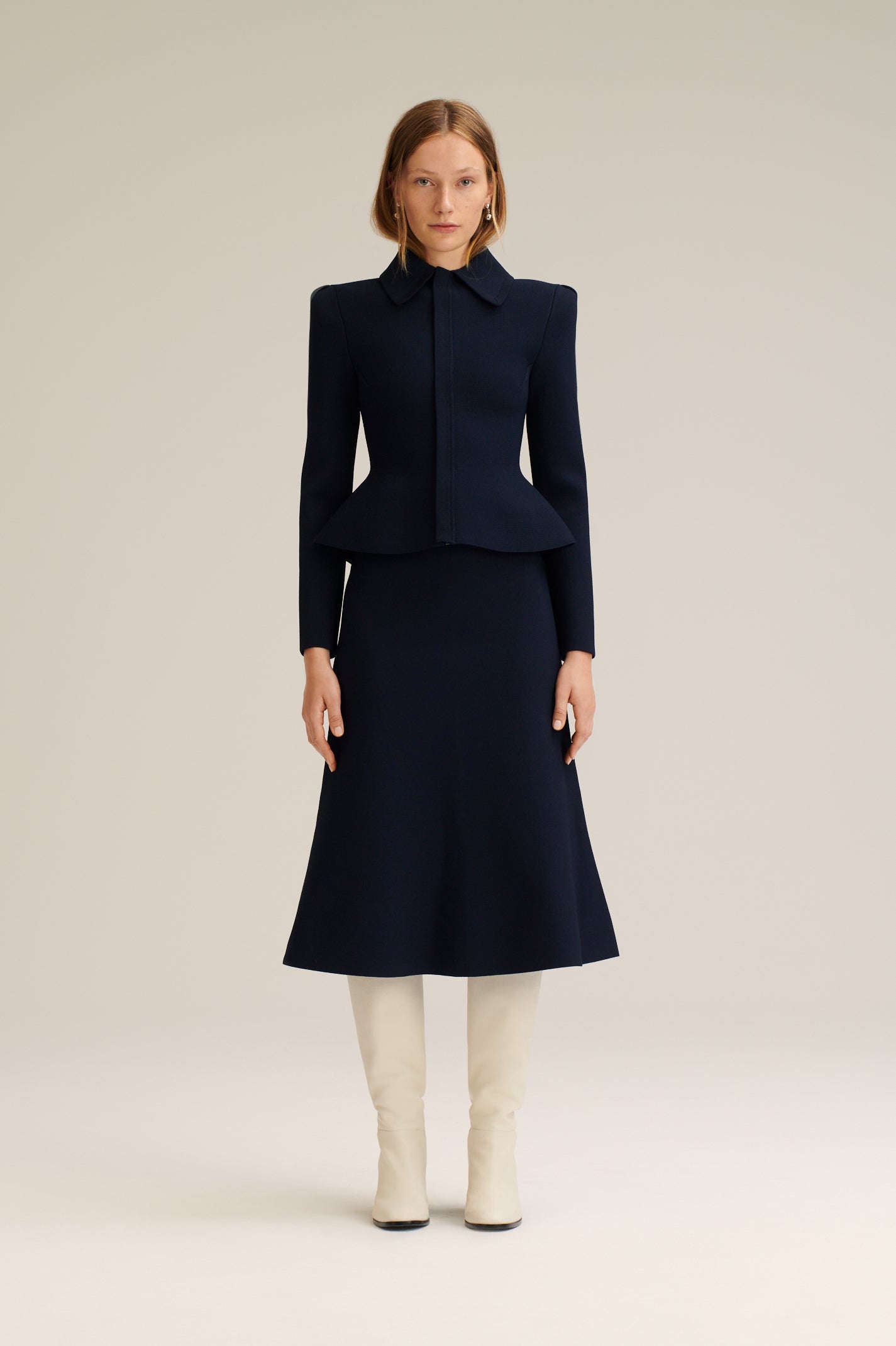 Crepe Knit Peplum Collar Jacket
