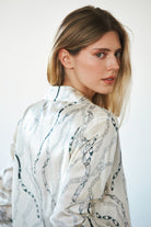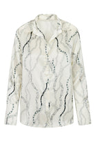 The Daria French Cuff Silk Blouse is a playful addition to any wardrobe. This white blouse features a unique chain pattern and french cuffs, adding a touch of whimsy to your outfit. Made from luxurious silk, it's not just stylish, but also comfortable and versatile for any occasion.